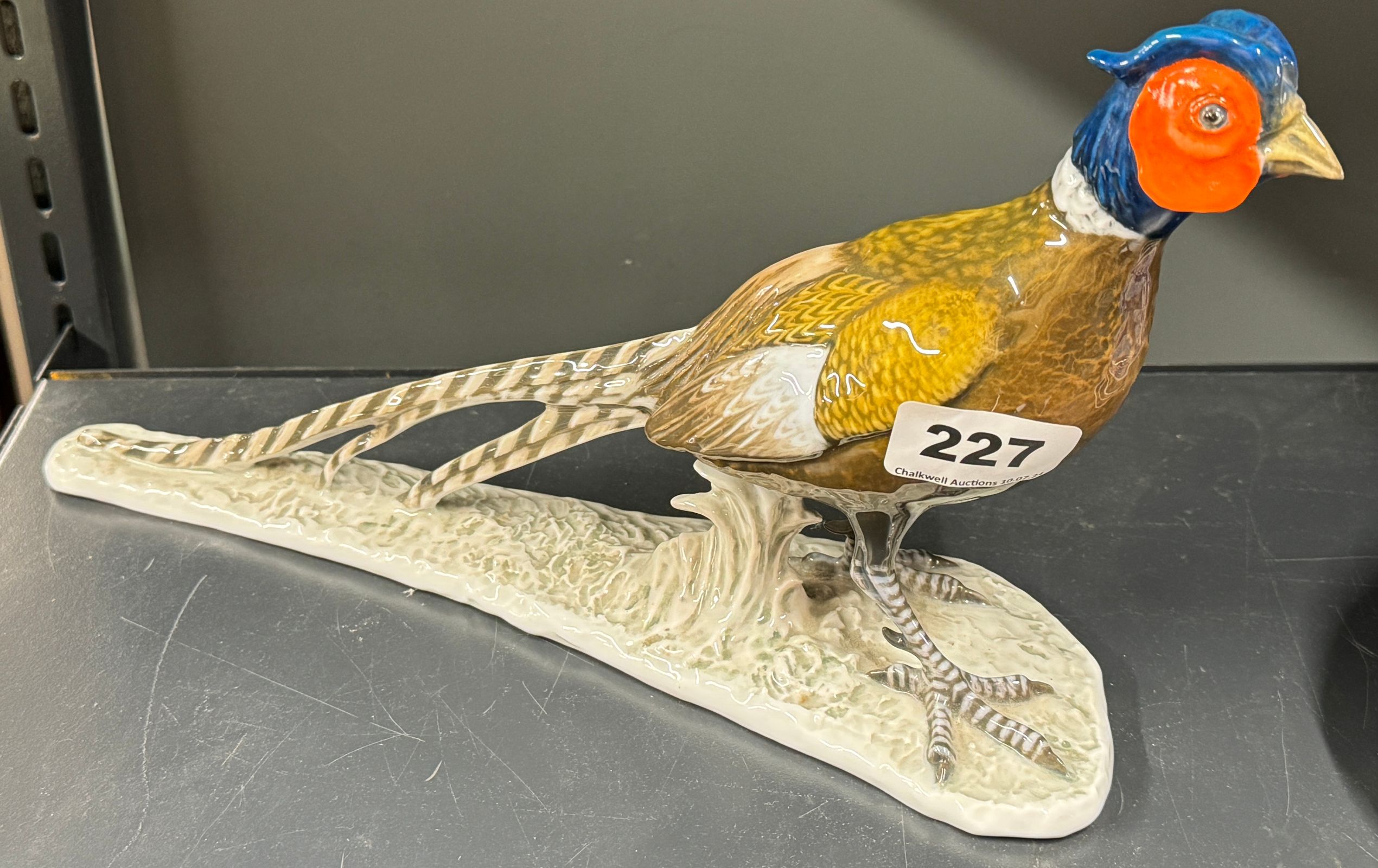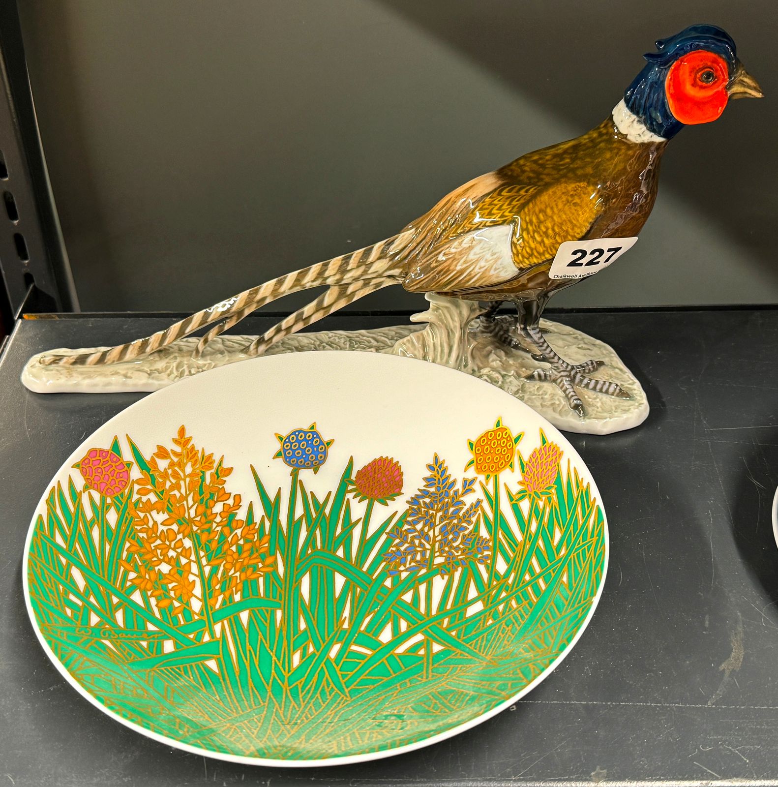 A Rosenthal figure of a pheasant, together with a Rosenthal dish, pheasant L. 35cm.