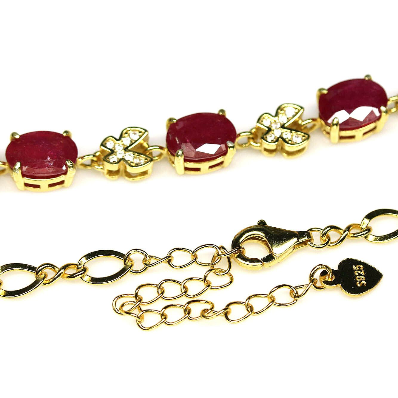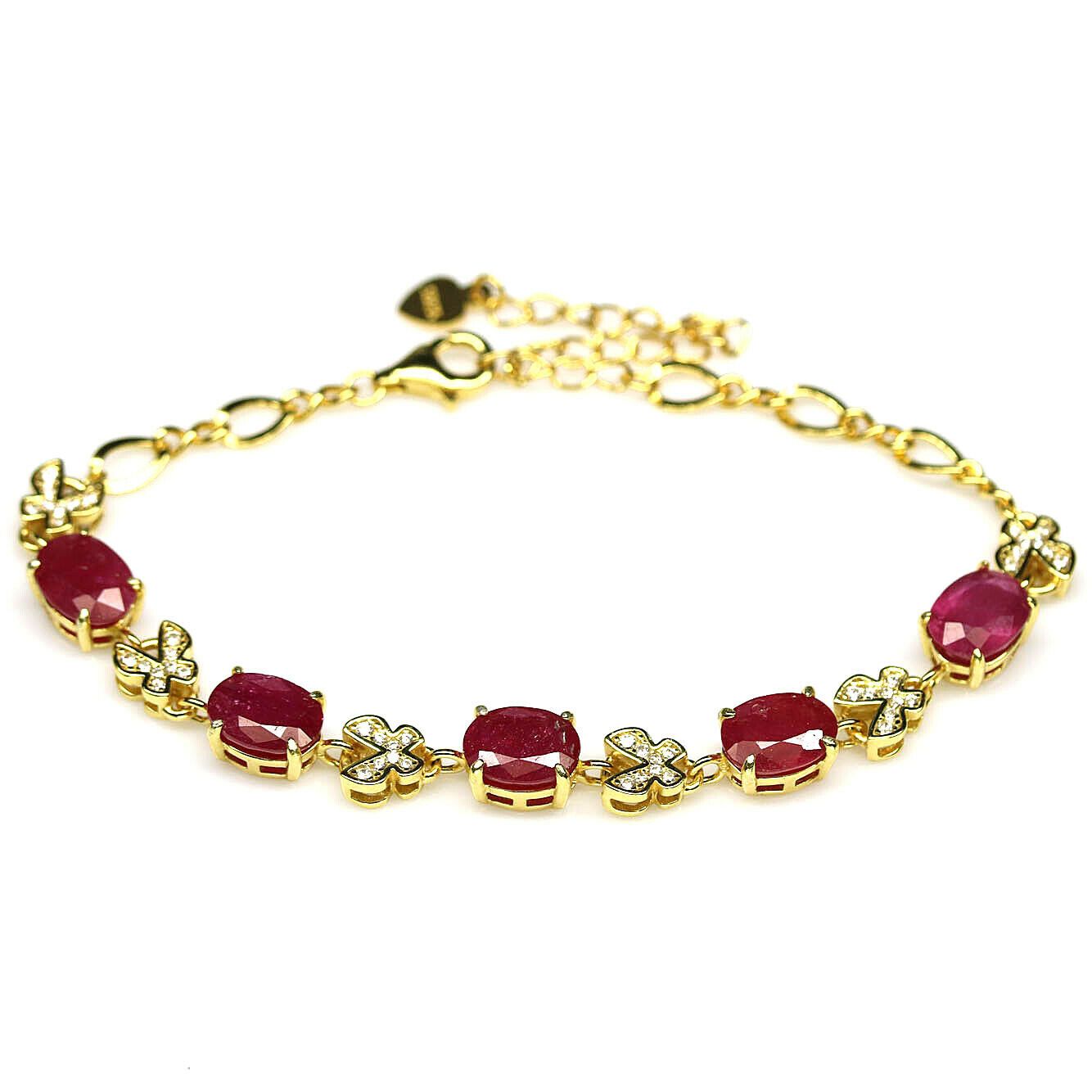 A 925 silver gilt bracelet set with oval cut rubies and white stones, L. 18cm.